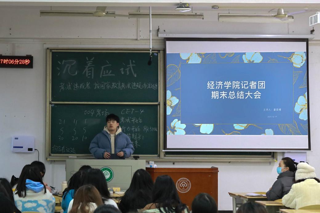 本站訊(記者:喬潤典)為充分總結工作情況,規劃未來發展方向,12月17日,經濟學院記者團于15號教學樓106教室召開了期末總結大會。記者團指導老師徐瑩及記者團全體成員參加會議。會議由記者團2021屆團長童奕博主持。
