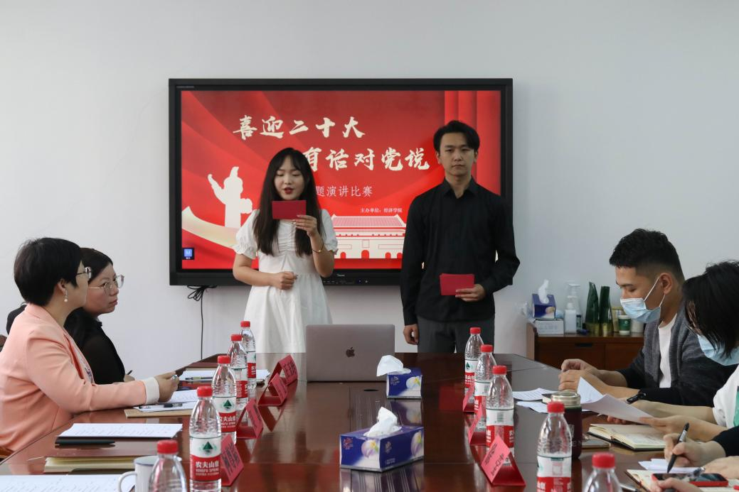 為貫徹落實習近平總書記關于青年工作的重要思想,扎實推進愛黨愛國教育活動的開展,迎接黨的二十大勝利召開,10月14日下午,經濟學院舉辦了“喜迎二十大,有話對黨說”主題演講比賽決賽。比賽邀請到經濟學院黨委書記柯尊韜、黨委副書記劉君強參加,教工和學生黨支部書記擔任評委。
