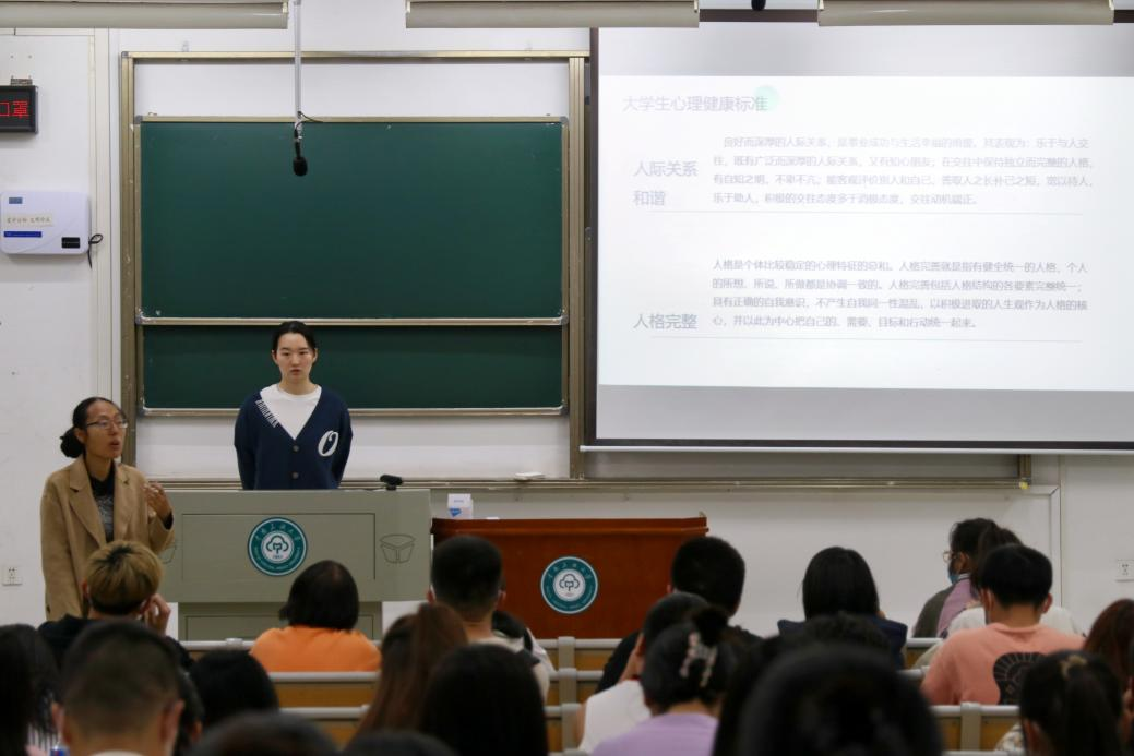 會(huì)上,兩位主講人圍繞大學(xué)生常見心理問題及知識、心理委員工作職責(zé)和角色定位、大學(xué)生心理健康問題應(yīng)對方法以及認(rèn)識心理咨詢四個(gè)方面展開介紹。廖夢琪表示,大學(xué)生應(yīng)該高度重視和關(guān)注心理健康,心理委員和寢室長應(yīng)積極主動(dòng)關(guān)心身邊同學(xué)的心理動(dòng)態(tài),及時(shí)向輔導(dǎo)員和班導(dǎo)師反饋情況,并通過協(xié)助開展心理健康培訓(xùn)和定期組織主題班會(huì)等方式幫助同學(xué)們深入學(xué)習(xí)相關(guān)知識,正確認(rèn)識自身心理健康狀態(tài)。張竹云結(jié)合實(shí)際案例,詳細(xì)闡述了大學(xué)生常見心理問題的癥狀表現(xiàn)、預(yù)防措施及應(yīng)對方法,分享了學(xué)校心理咨詢預(yù)約流程,鼓勵(lì)同學(xué)們通過科學(xué)有效的方式擺脫不良情緒,保持健康樂觀、積極向上的心態(tài)。