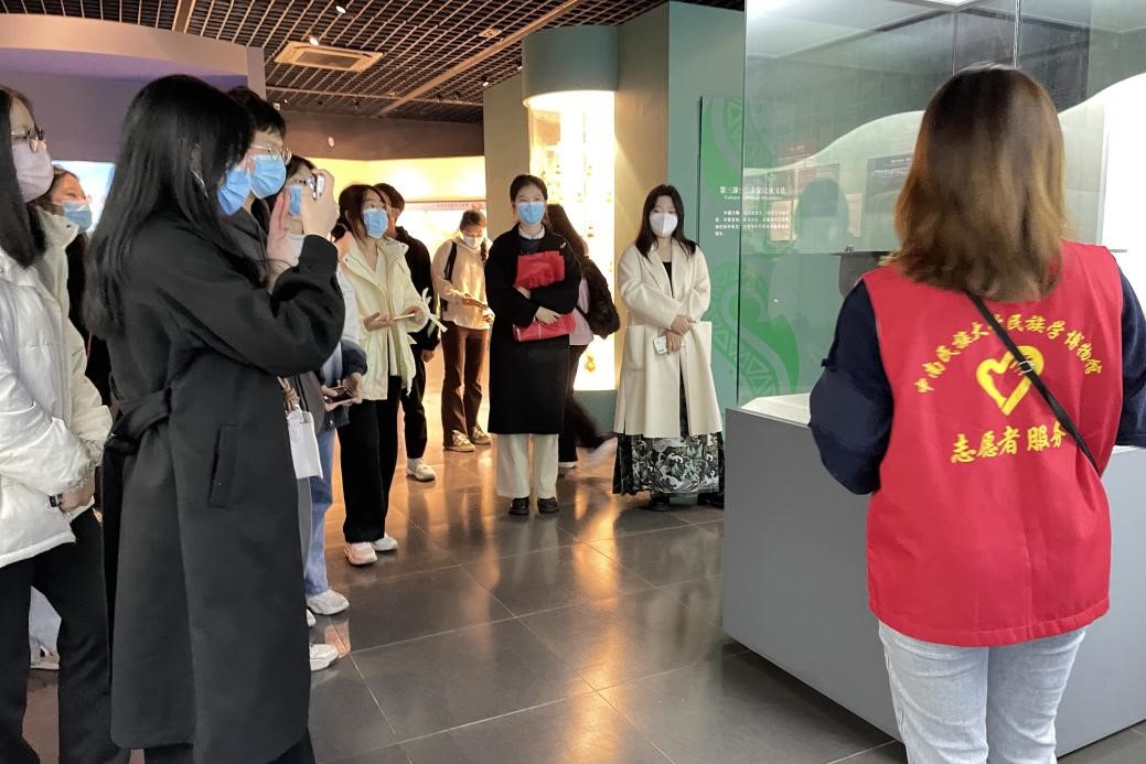 實踐課開始前,培訓班組織學員們參觀學校民族學博物館并共同制作主題心愿展板。在遵守學校疫情防控規定條件下,部分團校學員走進民族學博物館,深入學習民族文化與優秀民族精神,進一步鑄牢中華民族共同體意識,交流各民族的歷史淵源及生活習俗,深刻領悟民族團結的重要性與必要性。本次實踐課還準備了以藍天為背景的活動展板,學員們在紙上寫下黨的二十大精神感悟及對未來的心愿寄語,并將其折成紙飛機,粘貼在藍天展板上,寓意將美好祝福放飛在祖國的藍天下,共同展望祖國與個人的美好未來。