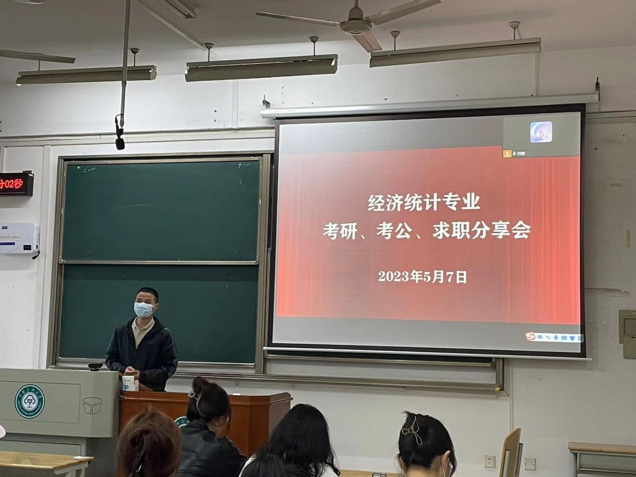 為幫助經濟統計專業學子確定發展目標,制定科學、合理的未來發展計劃,5月7日晚,經濟統計教研室邀請5位2019級優秀畢業生在15號教學樓207開展經濟統計專業考研、考公、求職分享會,2020級、2021級經濟統計專業學生到場參加學習。