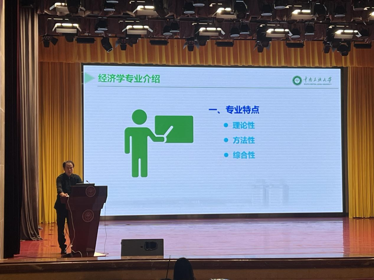 會議伊始,胡衛東為同學們解讀經濟學專業,強調經濟學應該深入社會,實踐求知,同時,講到本科就業,可以沿“一帶一路”發展,將自己的人生規劃與國家戰略同頻共振,從而實現自己的人生價值。