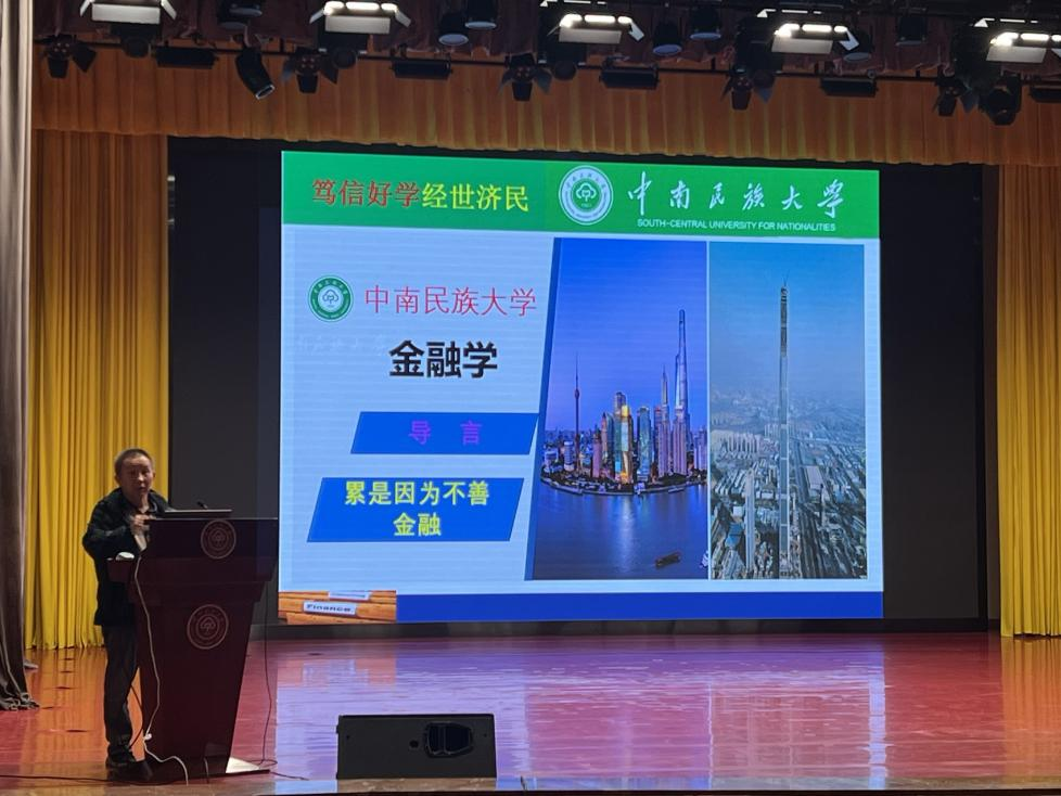 隨后,馬國平為大家講解金融學專業,以“金融文盲人生空忙”“累是因為不善金融”等幽默詼諧的話語深入淺出地解讀了金融學,極大激發了同學們對金融學的興趣。