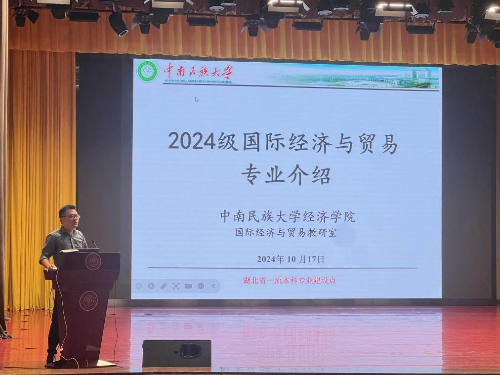 為幫助學生全面了解所學專業,明確未來職業規劃,以更飽滿的熱情去迎接新挑戰,經濟學院于2024年10月17日在學術會堂成功舉辦了專業宣講會。經濟學教研室胡衛東老師、金融學教研室馬國平老師、國際經濟與貿易教研室劉家悅老師、數字經濟教研室羅勝老師、2024級輔導員安樹庭、郭修齊出席本次活動。宣講會由郭修齊主持。