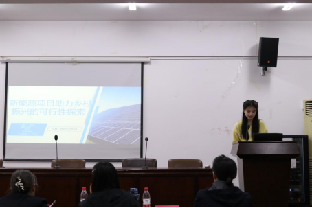 隨后,十四組項目團隊依次上臺,以PPT匯報形式在限定時間內對項目的執行進展進行了全面細致的介紹。各項目負責人分別圍繞低碳轉型、數字技術、視頻營銷、文化非遺等前沿領域,從項目的主題背景、模型思路、困難挑戰及解決辦法等方面,提出關于綠色金融、數字經濟、品牌發展、精準就醫等方面的創新見解和實踐建議。其中,“新能源項目助力鄉村振興”項目組備受關注,該項目負責人詳細講述了利用太陽能、風能等新能源技術為農村地區提供清潔、可持續的能源解決方案的情況,他們通過實地調研,分析了農村地區能源需求的特點和存在的問題,提出針對性的應用方案。
