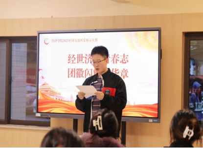 徐文洋、郭修齊分別做賽前講話。他們指出,團支部是連接共青團組織和團員青年的橋梁和紐帶,要帶領廣大青年學生進行自我教育、自我管理、自我服務;團支部同時要牢記自身的政治屬性,在思想引領、組織動員、服務引導中發揮先鋒模范作用,要保持根植于內心的理想信念,做經濟學院信者不盲的新青年、要保持自我革新的精神品格,做經濟學院智者不憂的新青年、要保持不畏挑戰的戰斗精神,做經濟學院勇者不懼的新青年。希望各團支部以此次風采大賽為契機踔厲奮發,展示經院青年學子篤行不怠的昂揚姿態。