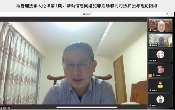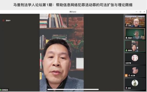 2022年2月24日19至22時,由中南民族大學、北京大學、中國人民大學、武漢大學、山東大學和西北政法大學等六校法學院學者共同發起的“馬普刑法學人論壇”第一期講座采用線上直播的方式舉辦。北京大學法學院副教授、博士生導師江溯老師應邀作了題為“幫助信息網絡犯罪活動罪的司法擴張與理論限縮”的學術講座。首期論壇由中南民族大學法學院主辦,我院周遵友教授擔任主持人。