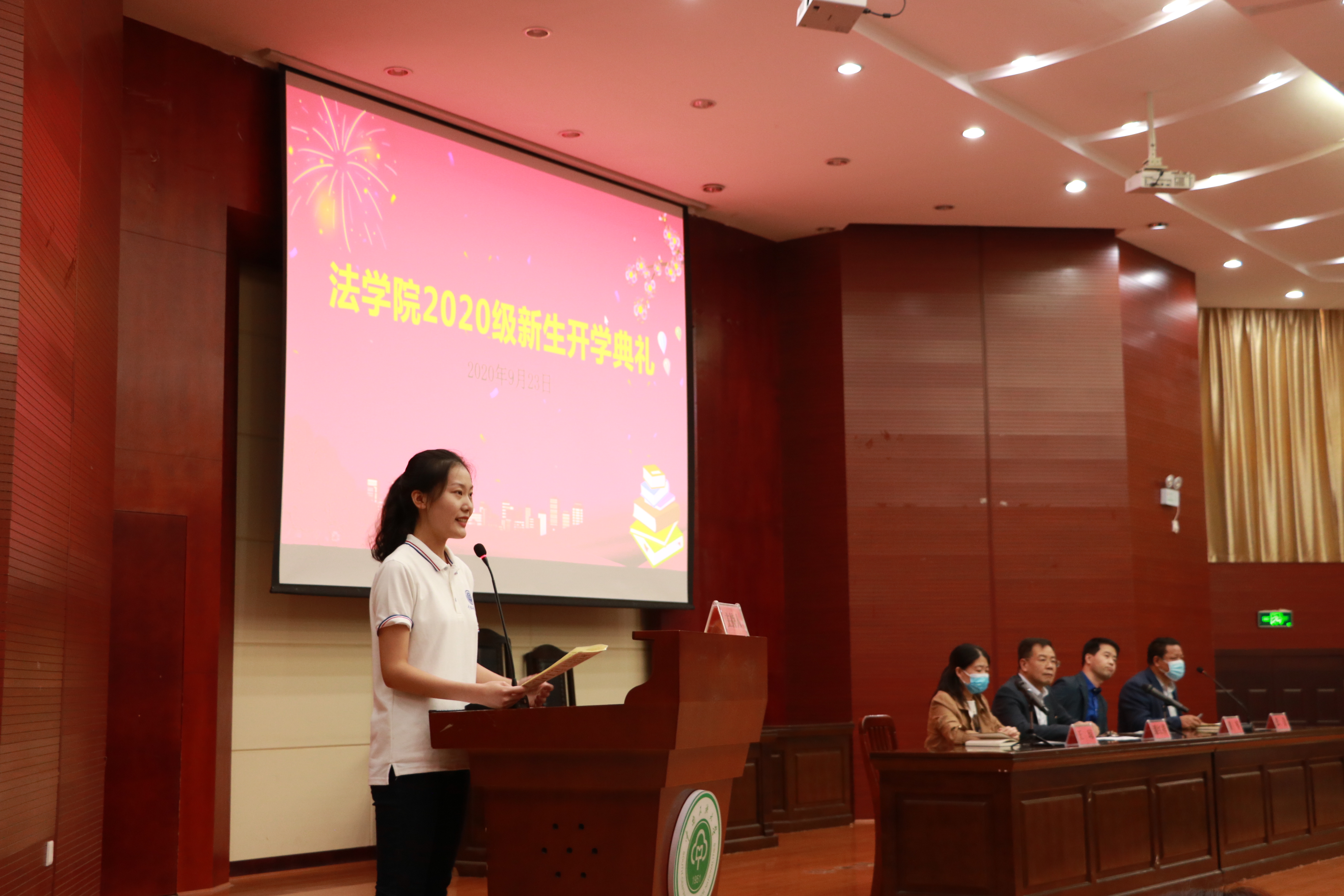 2020年9月23日下午兩點(diǎn),中南民族大學(xué)法學(xué)院2020級(jí)新生開(kāi)學(xué)典禮在模擬法庭隆重舉行。出席本次開(kāi)學(xué)典禮的嘉賓有法學(xué)院院長(zhǎng)潘紅祥老師、黨委副書(shū)記王瓊老師、法學(xué)院專(zhuān)職組織員張青老師、法學(xué)院副院長(zhǎng)黃軍老師,教研室主任鄭鵬程老師、楊帆老師、余濤老師、葉金育老師、鄭穎捷老師,2001班班主任王薇老師、2002班班主任袁野老師、2006班班主任涂少彬老師,2020級(jí)輔導(dǎo)員張利菊老師,以及2020級(jí)全體新生和部分學(xué)長(zhǎng)計(jì)劃代表。