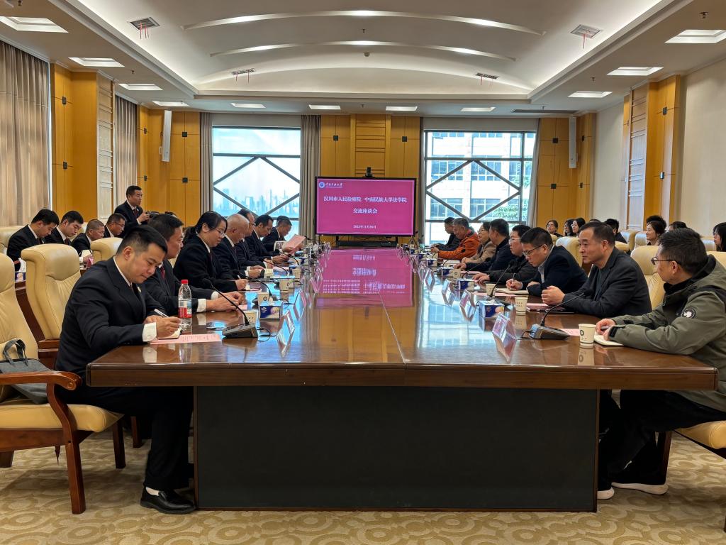 11月26日上午,漢川市人民檢察院黨組書記、檢察長張毅軍率黨組成員、副檢察長蔡向陽、黎德才,黨組成員、檢委會專職委員陳勇等一行19人來我院調(diào)研交流。學(xué)院黨委書記鄧行,副院長廖華、陳蒙,以及相關(guān)教師代表共同參與座談。會議由廖華主持。
