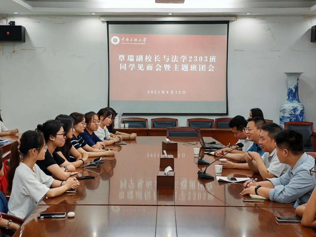 9月12日,校黨委常委、副校長覃瑞與其聯系的班級法學院2303班同學見面,并給同學們作了黨的二十屆三中全會精神的宣講。學院黨委書記鄧行,黨委副書記姜珍,2023級學生輔導員以及法學院2303班全體同學參會。