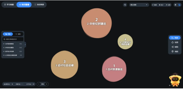 1.知識圖譜:梳理“古代奴隸制法–中世紀封建法–近代社會法律–20世紀以來法律”四大模塊,395個知識點與1970個教學資源深度關聯。標注“歷史影響”與“現代啟示”標簽,借助“時光漫游”功能,一鍵鏈接法典原文、歷史影像,實現跨時空學習。