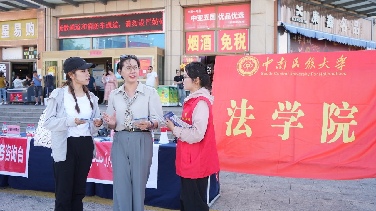 活動期間,余瑩教授和學生熊津津、覃詞、陳鵬、鐘紫微一行5人及霍爾果斯司法局工作人員,在中哈霍爾果斯國際邊境合作中心設立普法宣傳點,采用“擺臺+實地走訪”的形式,同合作中心商戶、游客等人員進行交談,了解交易及日常生活中常發生的民商事糾紛類型,發放聯合普法宣傳小冊并普及相應的糾紛解決方式。同時,在現場設立法律咨詢點,對商戶們在合同簽訂、貨物運輸等方面遇到的難題及法律困惑進行詳實解答。本次普法活動共計發放宣傳冊600余份,服務群眾1000多人次,就具體糾紛提供法律咨詢、援助90余人次。