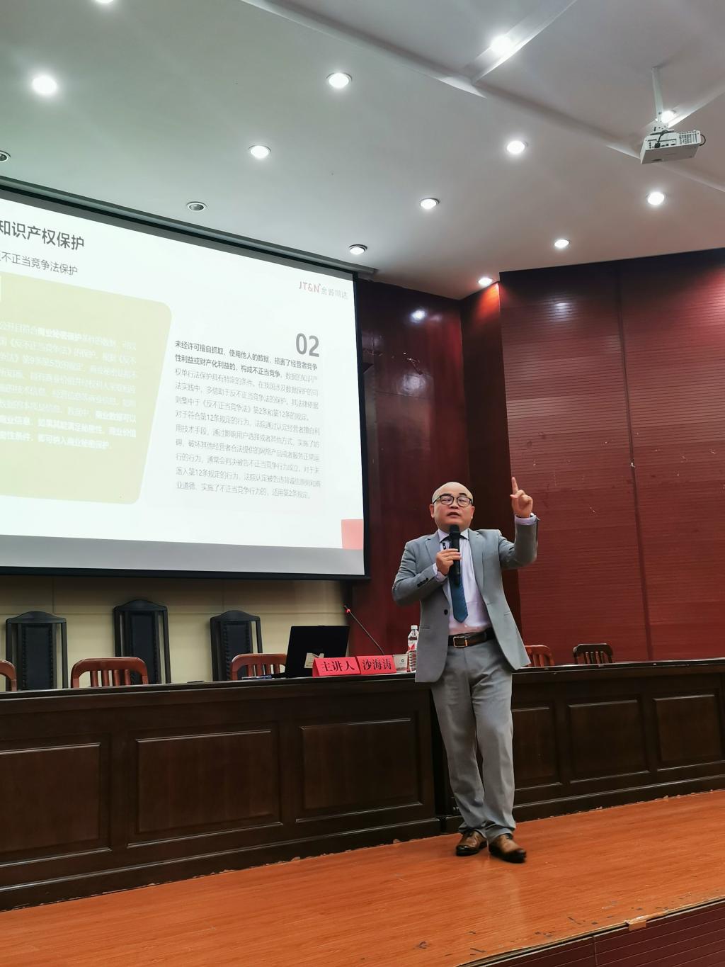 10月17日下午,“法霽講壇”第58期講座于模擬法庭開講。北京金誠同達(上海)律師事務所高級合伙人、法學博士、我院1992級校友沙海濤律師受邀做“數據資產與數據知識產權保護的若干思考”為主題的講座。講座由副院長陳蒙主持。