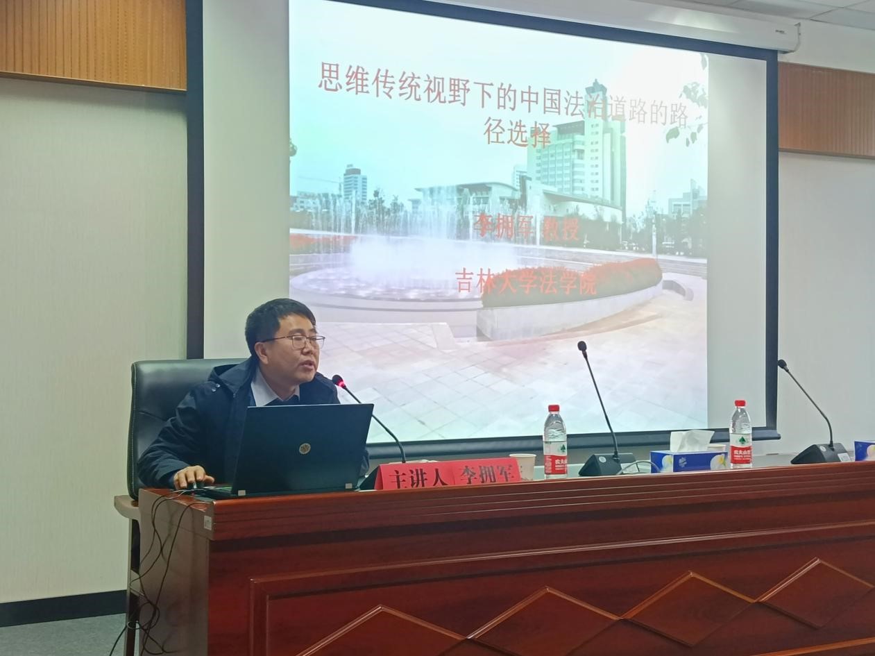 12月1日下午,我校法學(xué)院“法學(xué)家講壇”第三期在北書院澤霖學(xué)術(shù)講堂舉行。本期講壇邀請(qǐng)中國(guó)法學(xué)會(huì)法理學(xué)研究會(huì)副會(huì)長(zhǎng)、吉林大學(xué)法學(xué)院李擁軍教授開講,帶來題為《思維傳統(tǒng)視野下中國(guó)法治道路的路徑選擇》的講座。講座由法學(xué)院院長(zhǎng)潘紅祥教授主持。