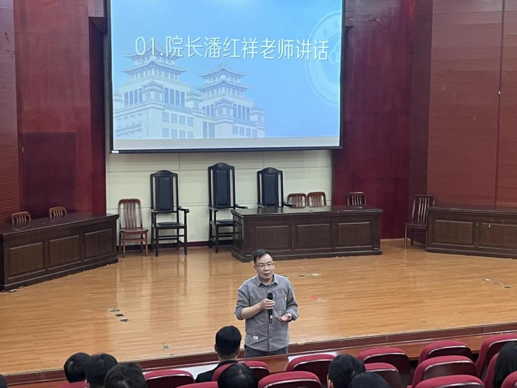 活動伊始,院長潘紅祥發表了重要講話。他強調了實習在法學教育中的重要性,指出實習是理論與實踐相結合的關鍵環節,能夠幫助學生們更好地理解和運用法律知識,提升專業素養和職業能力。潘院長對2022 級實習生在實習期間的優秀表現給予了高度評價,肯定了他們的努力和付出,并鼓勵 2023 級學生以優秀實習生為榜樣,積極投身實習,勇敢面對挑戰,在實踐中不斷成長和進步。