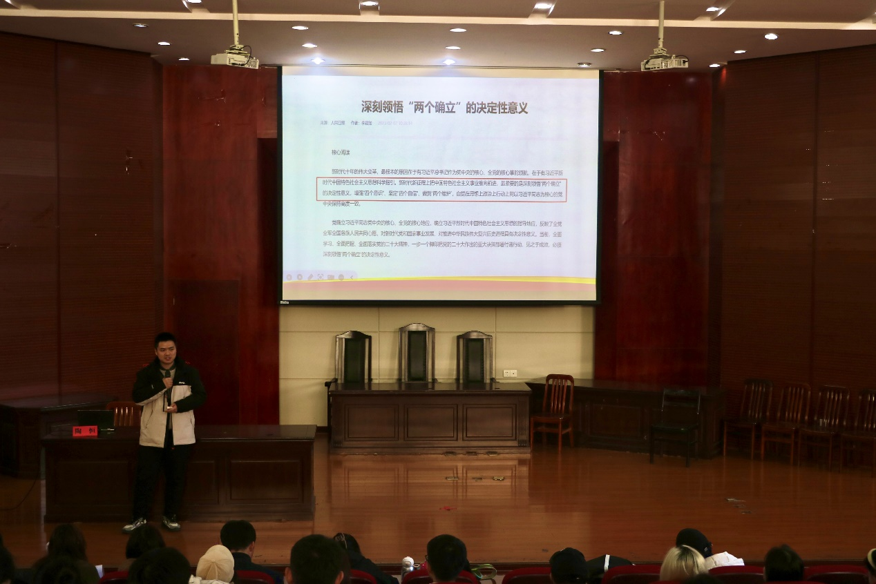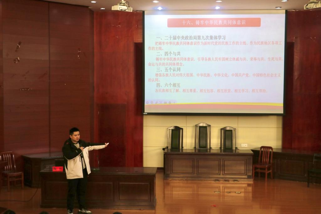 在課程的尾聲,陶恒老師告誡同學們要深刻領悟“兩個確立”的決定性意義,增強“四個意識”,堅定“四個自信”,做到“兩個維護”,自覺在思想上、政治上、行動上同以習近平同志為核心的黨中央保持高度一致。最后,他著重強調了助力實現中華民族偉大復興的中國夢的重要性,并提出青年團員要把握好鑄牢中華民族共同體意識的思想路線,不斷提升自己的民族素養和團結意識,為構建中華民族共同體貢獻自己的力量。