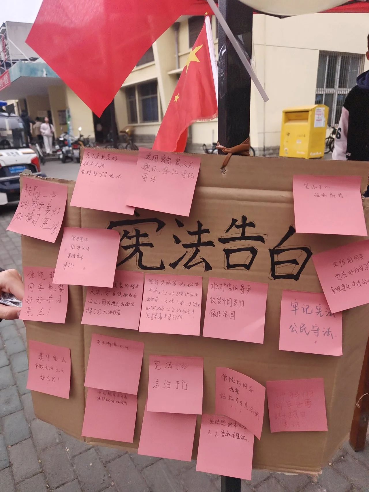 此外,學(xué)生會(huì)工作人員還精心準(zhǔn)備了憲法留言板,同學(xué)們?cè)趯W(xué)習(xí)憲法知識(shí)后,可以用國(guó)家通用語(yǔ)言或自己民族的語(yǔ)言寫下對(duì)憲法的感悟話語(yǔ)。