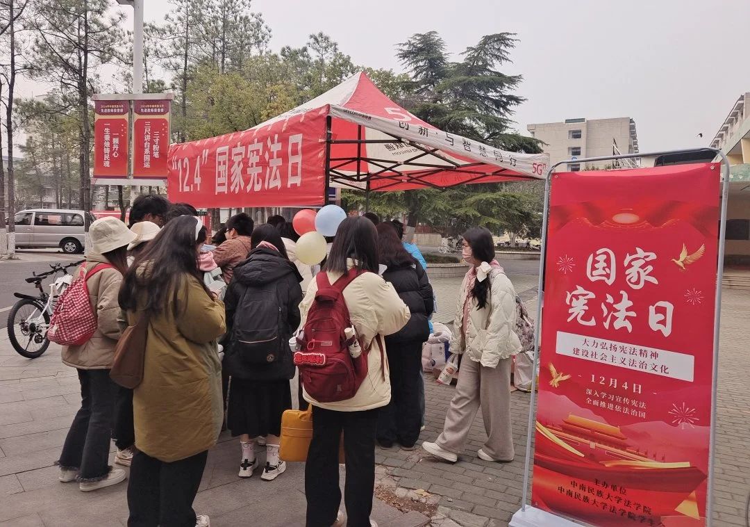 2024年12月4日,為深入學(xué)習(xí)貫徹黨的法治理念,弘揚(yáng)憲法精神,在第十一個(gè)國(guó)家憲法宣傳日到來(lái)之際,法學(xué)院開展了國(guó)家憲法宣傳日擺臺(tái)活動(dòng)。