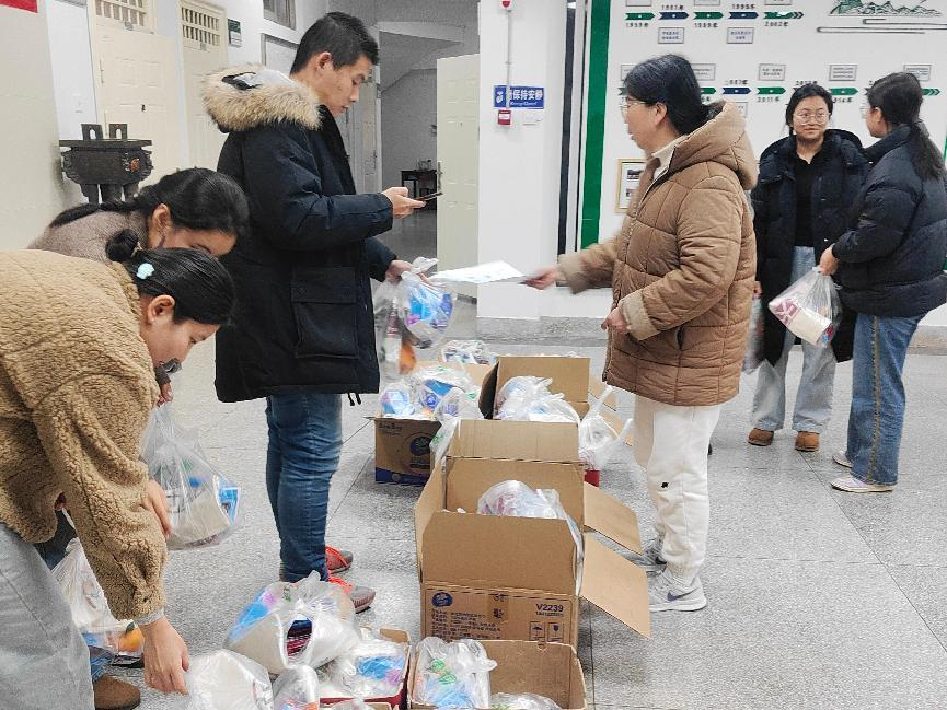 活動中,學子們收到了精心準備的考研禮包,當中不僅有紙巾、暖寶寶、帆布包等實用物品,還有具有美好寓意的“力”量滿滿——巧克力,好運“旺旺”——旺仔牛奶,“橙”功上岸——橙子。老師們將大禮包送到考研學子手中,親切叮囑大家要注意調整心態、注重勞逸結合,以最好的狀態迎接考試。