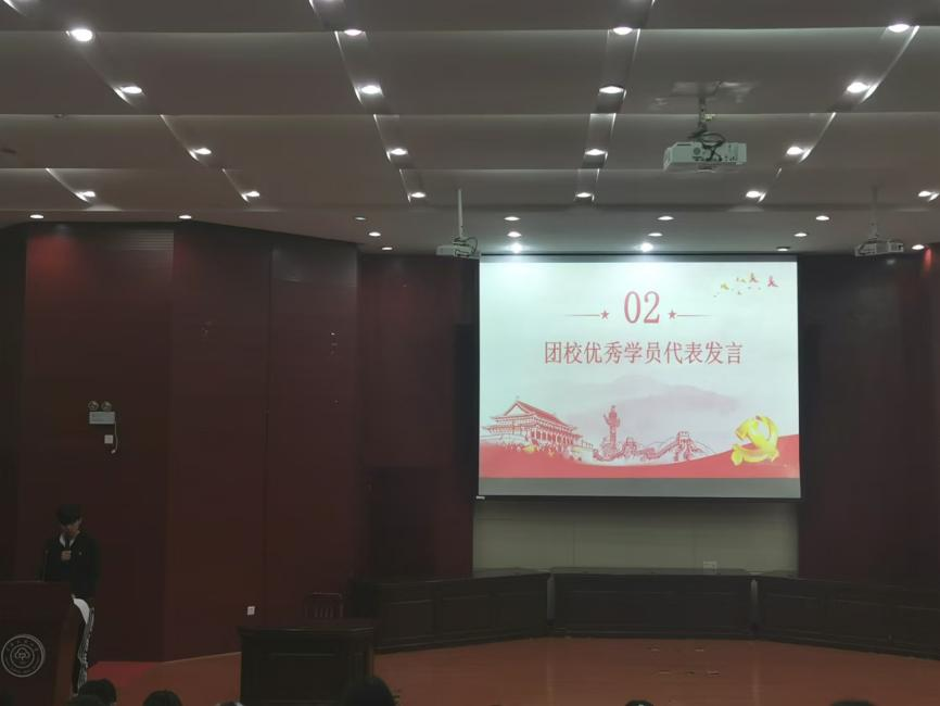 隨后,優秀學員代表楊昕燁上臺發言。楊昕燁同學和大家分享了本期團校學習所帶來的收獲,“我們不僅汲取了豐富的理論知識,更在實踐中磨礪了意志,增強了團隊協作和社會實踐的能力”“團校的學習極大地拓展了我們的視野,提升了我們的思想境界”,同時向各位學員發出錚錚號召,“我們將把在團校學到的知識和精神,帶到我們的學習、工作和生活中去。將繼續發揚‘團結、服務、犧牲’的共青團精神,以實際行動踐行我們的誓言”。