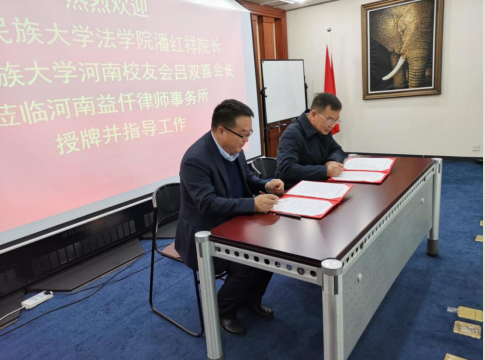 中南民族大學法學院潘紅祥院長與河南益仟律師事務所劉懷成主任簽訂合作協議