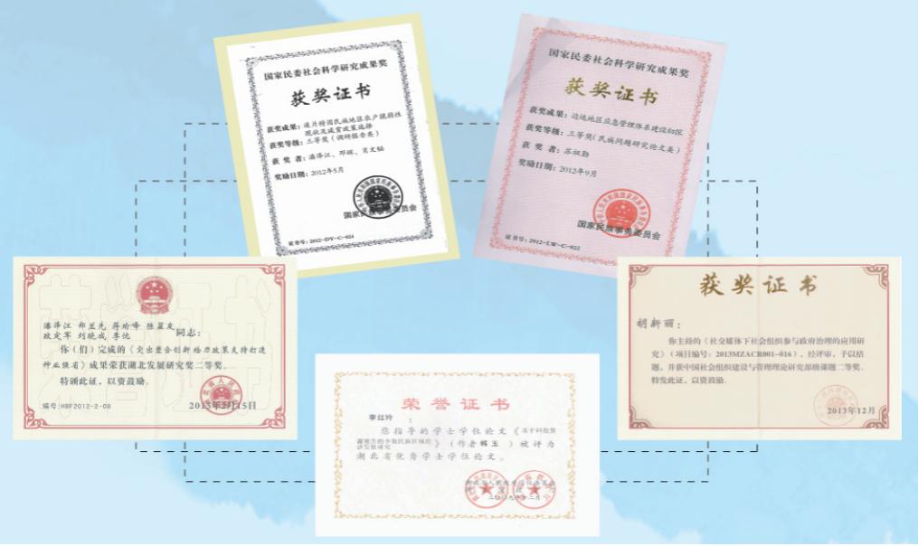 經(jīng)過多年的建設(shè),中心形成了民族地區(qū)基層治理、民族地區(qū)鄉(xiāng)村振興、民族地區(qū)鄉(xiāng)村規(guī)劃與旅游發(fā)展等穩(wěn)定的研究方向,在科學(xué)研究、資政服務(wù)及人才培養(yǎng)方面取得了較好的成績(jī):獲批國(guó)家及省部級(jí)項(xiàng)目20多項(xiàng),獲得湖北省、國(guó)家民委等省部級(jí)以上科研獎(jiǎng)勵(lì)及領(lǐng)導(dǎo)肯定性批示20次(項(xiàng)),完成民族地區(qū)“十四五規(guī)劃”、鄉(xiāng)村振興規(guī)劃及旅游規(guī)劃等30多項(xiàng),培養(yǎng)碩博研究生21名。