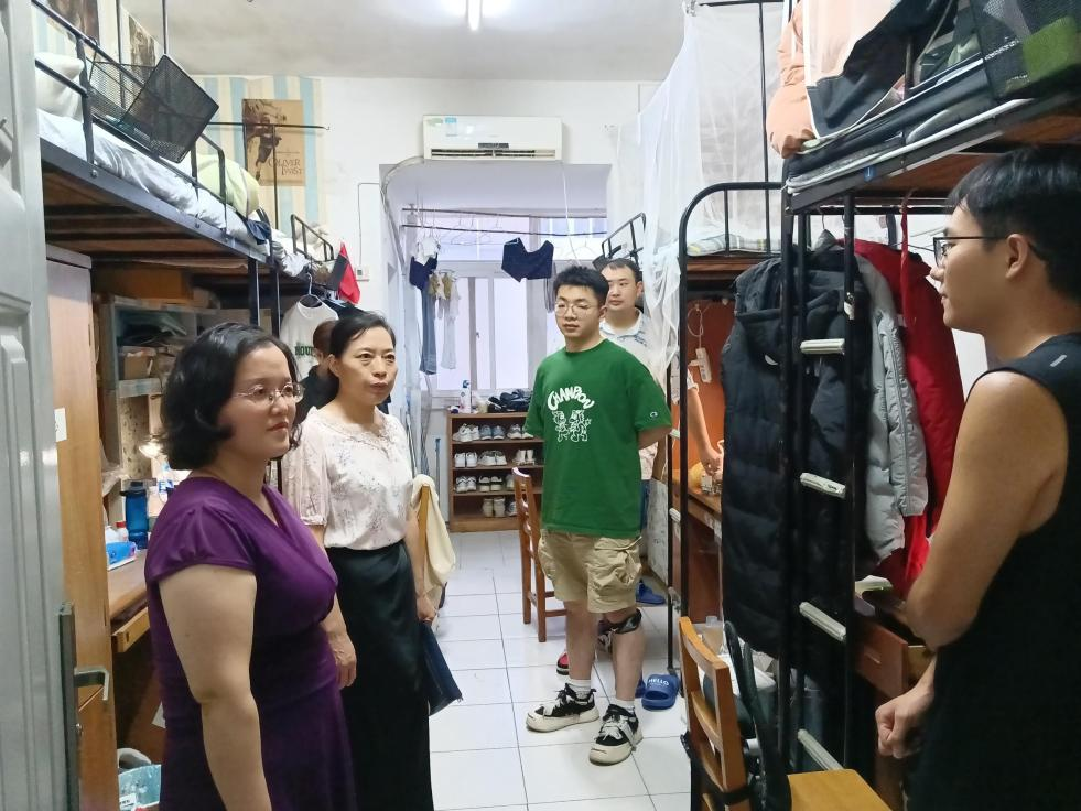 為切實做好留校學生的管理工作,全面了解學生的思想動態、學業及生活的實際情況,7月19日,公共管理學院黨委書記馬國杰、副院長胡新麗、輔導員楊燕老師深入學生宿舍,看望慰問在校學生,為學生送上慰問物資與關懷。