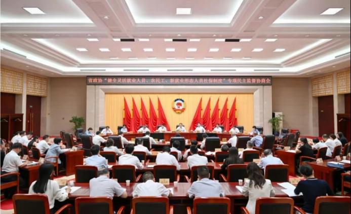 6月26日,省政協召開“健全靈活就業人員、農民工、新就業形態人員社保制度”專項民主監督會。省政協主席孫偉出席會議并講話。省政府副省長蔚盛斌到會聽取意見建議并講話。省政協黨組副書記、副主席爾肯江.吐拉洪主持會議。
