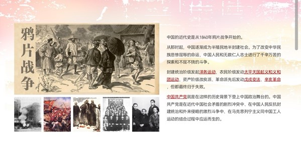 接下來(lái),饒老師帶領(lǐng)同學(xué)們學(xué)習(xí)了“中國(guó)近現(xiàn)代史的發(fā)展歷程”和建黨歷程。饒老師在“中國(guó)近現(xiàn)代史發(fā)展歷程”部分,先后向同學(xué)們講述了“鴉片戰(zhàn)爭(zhēng)”、“三元里抗英斗爭(zhēng)”、“太平天國(guó)抗擊侵略”、“義和團(tuán)抗擊侵略”和“辛亥革命”。饒老師讓同學(xué)們系統(tǒng)地了解了中國(guó)近現(xiàn)代史的發(fā)展。之后,饒老師向同學(xué)們介紹了“南陳北李,相約建黨”,結(jié)合之前比較熱門的影視劇《覺醒年代》,給同學(xué)們分享了自己的一些感受。饒老師介紹了中共一大召開的曲折歷程,說(shuō)明了共產(chǎn)黨成立的偉大歷史意義。饒老師還特別強(qiáng)調(diào)了毛主席的革命樂(lè)觀主義精神,“星星之火,可以燎原”,這句話語(yǔ),擲地有聲。