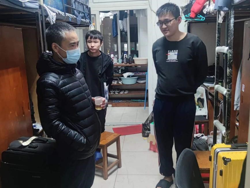 為及時(shí)關(guān)注和掌握學(xué)生思想動(dòng)態(tài),全面了解掌握學(xué)生的身心狀況,增強(qiáng)思想政治教育工作的針對(duì)性及有效性,確保學(xué)生工作有序推進(jìn)。2月20日晚八點(diǎn),公共管理學(xué)院黨委書(shū)記陳昌華同志、2020級(jí)輔導(dǎo)員師軍強(qiáng)老師及學(xué)生干部代表一道走訪了南區(qū)25棟宿舍,看望返校同學(xué)。