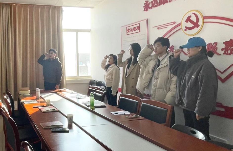 帶著楊燕老師的深切期望,同志們的目光聚焦到入黨誓詞墻上,宣誓儀式正式開始。由2023級研究生團支部書記、正式黨員代表牛佳偉領誓,研究生預備黨員曹旭杰、王妍妍、羅玉香、葉多面對黨旗,莊嚴宣誓。宣誓聲中,每一位預備黨員都表達了自己對黨的忠誠和對黨的事業的堅定承諾。