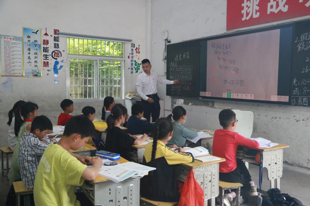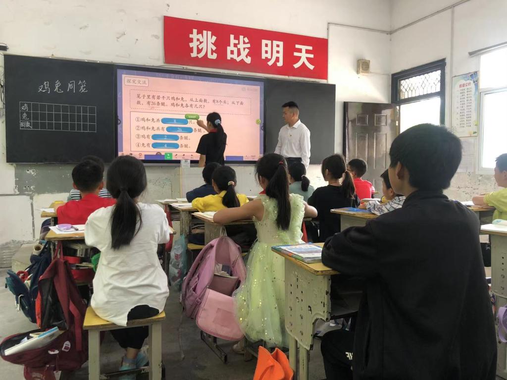 為了解大水學校課堂教學情況,開展課堂教學研討,我院MPA研究生黨員,武漢市光谷第二十五小學教師覃堃為四年級學生帶來了一堂“雞兔同籠”問題的示范課,覃堃充分結合了各種信息技術手段,以圖文并茂的方式講述了“雞兔同籠”問題的四種解法,課堂上師生互動頻繁,氣氛十分活躍。我院研究生黨員,曾赴貴州省印江縣羅場鄉羅場中(小)學支教一年的湯芳為五年級學生帶來了一堂生動的音樂課,師生一起同唱紅色歌曲。此外,我系入黨積極分子黃雅靜、程卓穎為幼兒園小朋友分發了帶來的文具、繪本、益智玩具等,并與小朋友們一起唱兒歌、做游戲。