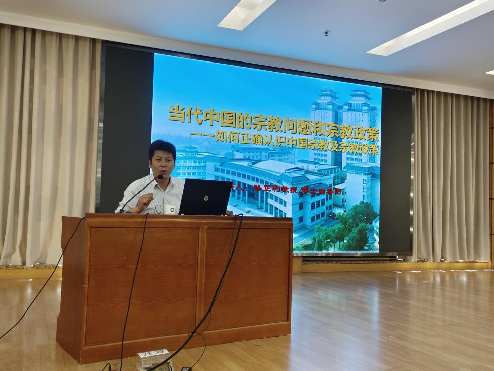 6月13日下午,公共管理學院在潤良報告廳開展主題黨課,本次黨課邀請到中南民族大學學報編輯部主任、博士生導師哈正利教授做以《當代中國的宗教問題和宗教政策——如何正確認識中國宗教及宗教政策》為主題的專題黨課,公共管理學院全體教職工及學生黨員參加。活動由公共管理學院黨委書記馬國杰主持。
