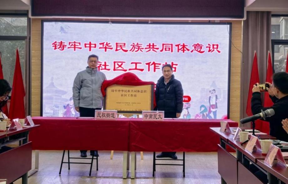 為持續深化校地黨建合作,進一步鑄牢中華民族共同體意識,2024年12月10日下午,由院黨委書記馬國杰、院長彭慶軍帶隊,我院師生一行13人赴武漢市江漢區民權街參加“中華民族一家親 同心共筑中國夢”主題活動,簽訂中南民族大學公共管理學院與武漢市江漢區民權街道黨建共建協議,并舉行“鑄牢中華民族共同體意識工作站”揭牌儀式。