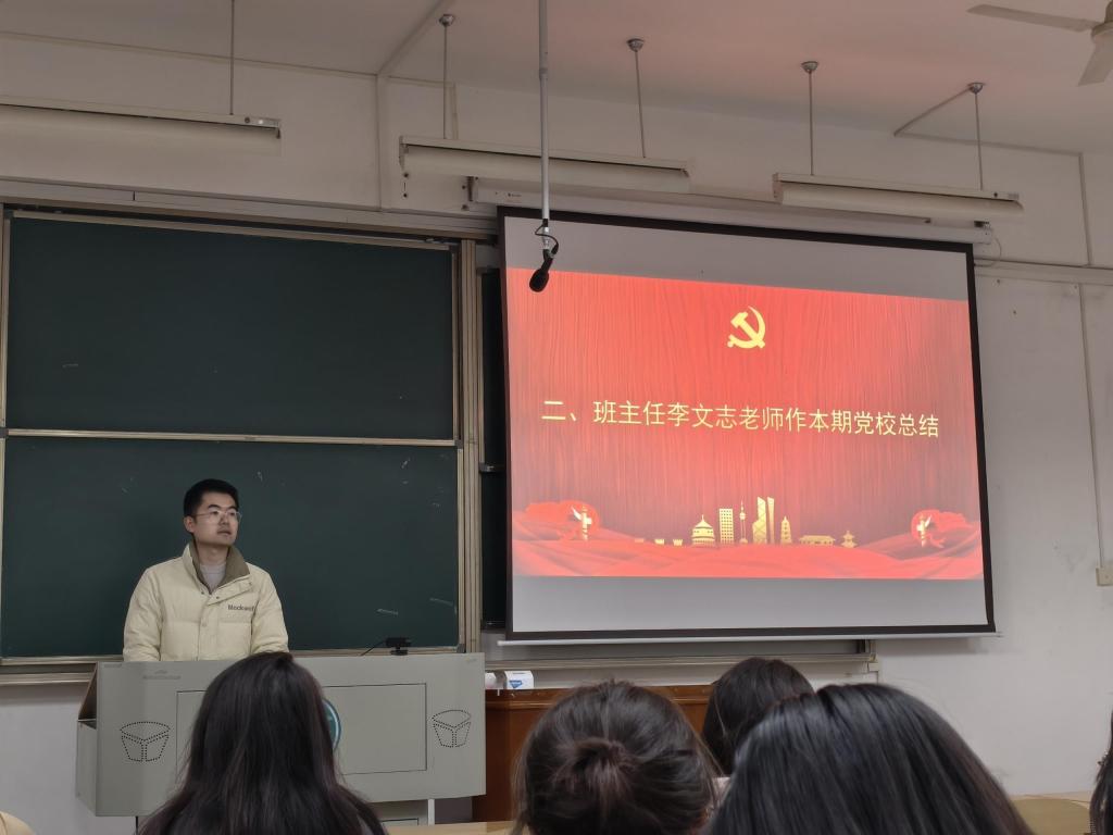 在莊嚴(yán)肅穆的中華人民共和國國歌中,黨校的結(jié)業(yè)儀式拉開帷幕。班主任李文志老師對(duì)本期黨校進(jìn)行了總結(jié),并宣讀本期黨校培訓(xùn)班優(yōu)秀學(xué)員名單。熊健淋、劉巳爍同學(xué)作為優(yōu)秀學(xué)員代表交流發(fā)言,他們分別匯報(bào)了此次黨校培訓(xùn)的學(xué)習(xí)心得,表示本次培訓(xùn)班形式多樣、理論扎實(shí)、內(nèi)容豐富,全體學(xué)員都進(jìn)一步加深了對(duì)黨章黨規(guī)黨紀(jì)、黨的二十大、二十屆二中、三中全會(huì)精神和鑄牢中華民族共同體意識(shí)的理解和認(rèn)識(shí)。下一步,同學(xué)們將堅(jiān)定理想信念,以昂揚(yáng)的精神風(fēng)貌和腳踏實(shí)地的行動(dòng)擔(dān)當(dāng)作為,為強(qiáng)國復(fù)興偉業(yè)貢獻(xiàn)青春力量。馬國杰書記為優(yōu)秀學(xué)員頒獎(jiǎng)并合影留念。