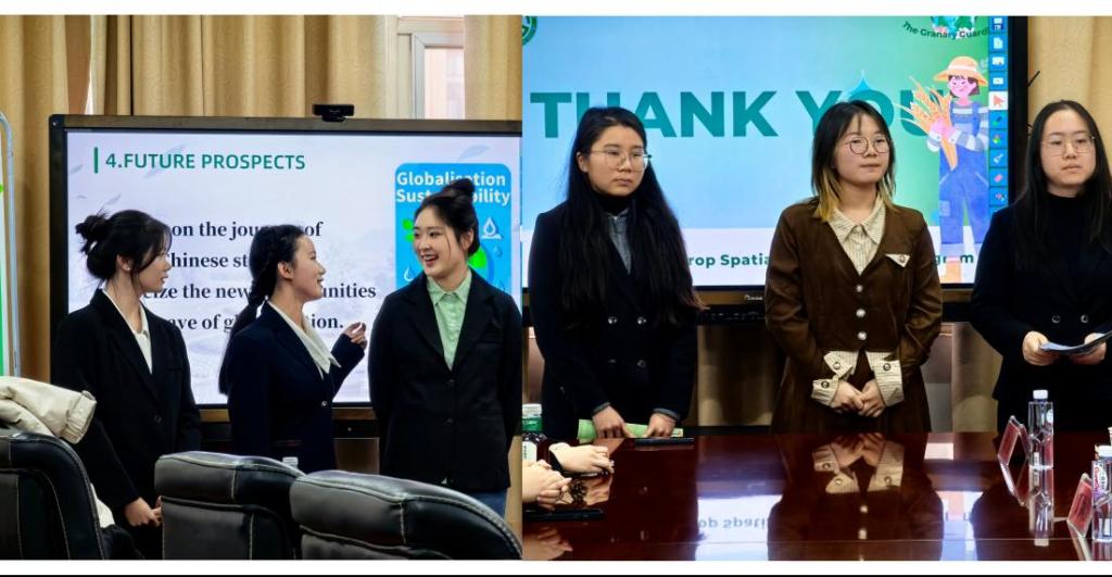 兩組同學分別對題為《HOW TO ENHANCE RURAL INCOME RESILIENCE in ETHNIC REGIONS——with the BACKGROUND of CLIMATE CHANGE》的指定作品進行修改和全英文展示。“造夢隊”以一曲《瀾滄春曉》琵琶演奏帶入情境,闡述瀾滄江流域在全球氣候變化挑戰下,如何借助物聯網等科技手段,打造集數字治理、社區聯動、新媒體傳播于一體的農業生態治理閉環;“糧倉守衛者隊”則通過設計智慧農業平臺為農民提供種植建議,并結合天氣預報提出災害應對策略。選手踴躍互動與討論,專家點評犀利、中肯,贏得現場的熱烈掌聲,將本次活動推向高潮。
