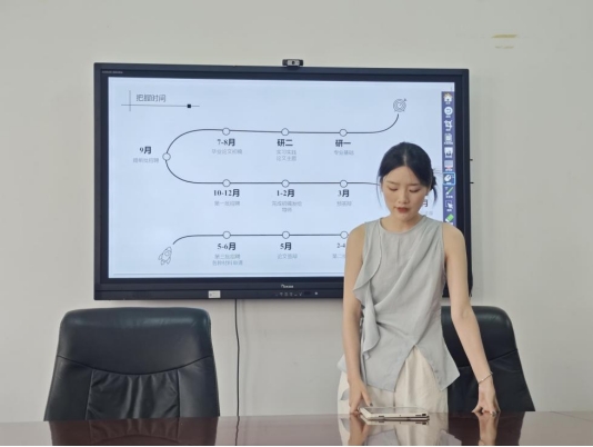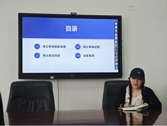 接著,錄取至華中農業大學博士研究生的明珺瑤同學介紹了自己的申博經歷,向以升學為畢業去向的同學闡述了申請博士的準備工作、申請過程、面試經驗以及注意事項。她建議同學們在低年級積累中文核心、一作文章等科研成果,提高自身英語水平,以研三的十月份為重要節點投遞簡歷,她還分享了學校選擇、導師選擇、簡歷投遞技巧、面試技巧的心得,給同學們提供了參考。
