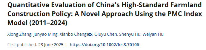共同一作:明珺瑤,研究生,研究方向:糧食安全與高標準農田建設。