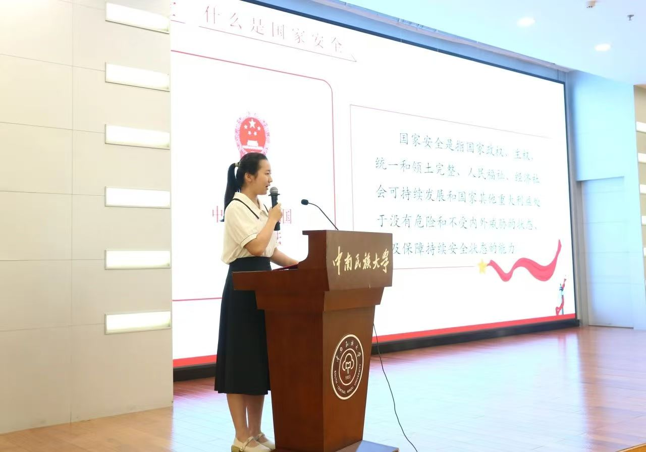 洪山中學九(7)班牛若惜同學以《以融合之基,筑國安之廈》為題發表演講,她目光堅定,聲音鏗鏘:“國家安全涵蓋政治、經濟、文化等諸多維度,民族融合與之血脈相連。作為新時代青年,我們誓做國家安全與民族團結的堅定守護者,為國之安泰、民族之和美貢獻青春力量!”這份擲地有聲的宣言,點燃了全場學子心中的責任之火。