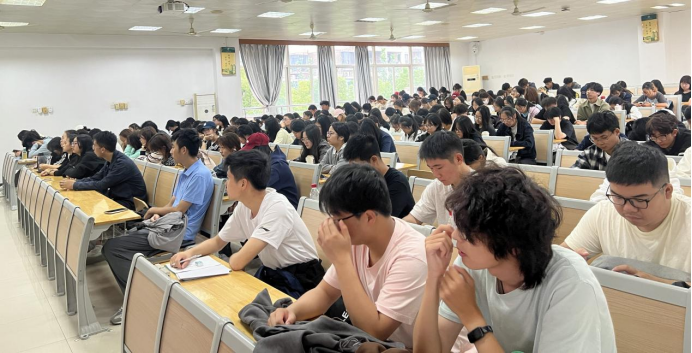胡凱老師從大學生就業形式分析、院校與專業的選擇以及大學生各階段高效學習的策略三個話題展開分享。他通過展示數據、列舉案例等方式,闡述大學生有理想有目標的重要性。并且,他收集近年來部分高校保研考研數據并講述考研的益處和考研相關要求,幫助新生打破信息差。最后,他向同學們分享了科學的學習方法,包括時間管理、重點傾向以及心態平衡等方面,有助于明晰新生的學習規劃。