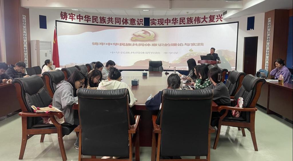 隨后,李學保教授以“鑄牢中華民族共同體意識的理論與實踐”為主題,給學員們上了一堂繪聲繪色的主題黨課。黨課內容主要圍繞“百年變局與民族工作面臨的新形勢、新任務和新挑戰”、“‘習近平總書記關于加強和改進民族工作重要思想’的內涵與實質”、“以‘鑄牢’為主線做好新時代民族工作應把握的原則”和“如何看待民族工作實踐中的幾個問題”四個方面展開,通過自身經驗和當代時事政治相結合的方式深入淺出地闡釋了鑄牢中華民族共同體意識的重大意義,引導學員們自覺維護中華民族大團結,鑄牢中華民族共同體意識。