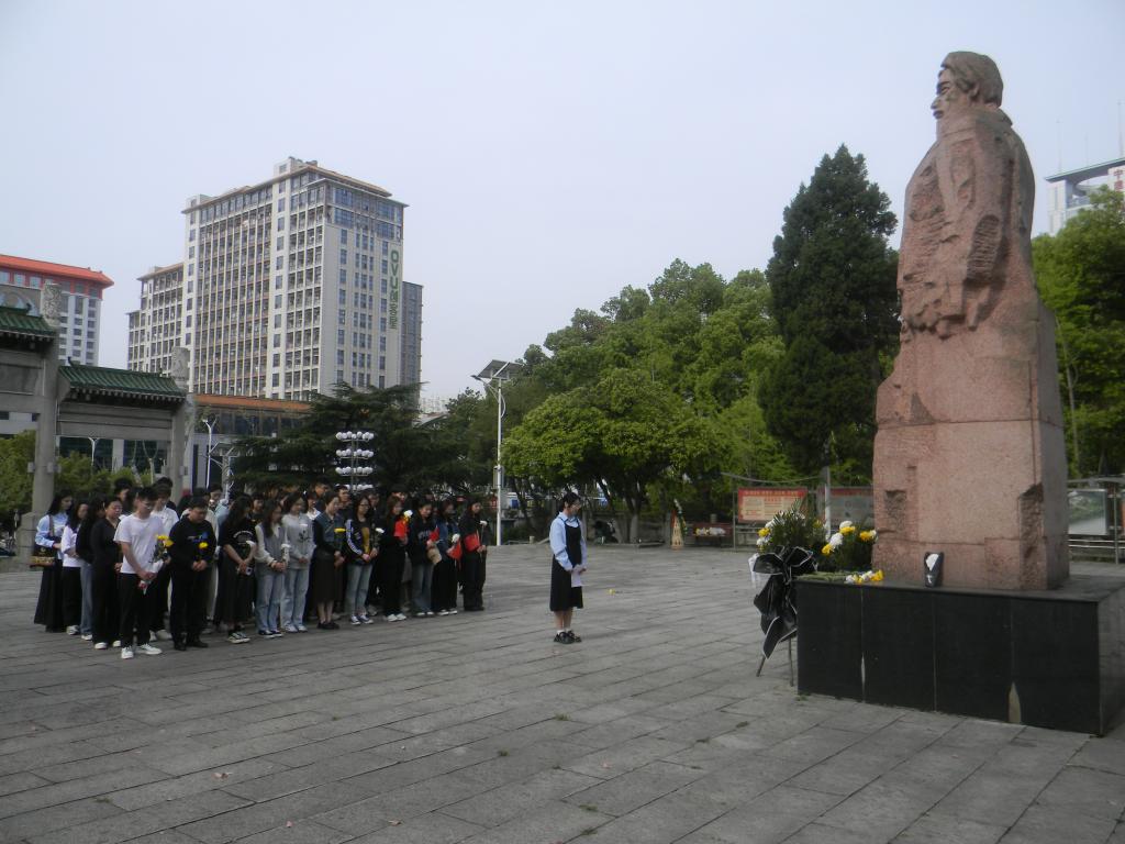 在施洋烈士紀念碑下,公共管理學院碩士生黨支部副書記陸星雨介紹了施洋烈士的生平概況,同學們重溫入黨誓詞,回顧了共產黨人不畏犧牲、前赴后繼的偉大壯舉,革命先烈為國捐軀、英勇無畏的革命精神。隨后,同學們在施洋烈士紀念碑前依次敬獻鮮花,全體默哀,共同緬懷這位為共產主義事業英勇獻身的革命烈士。