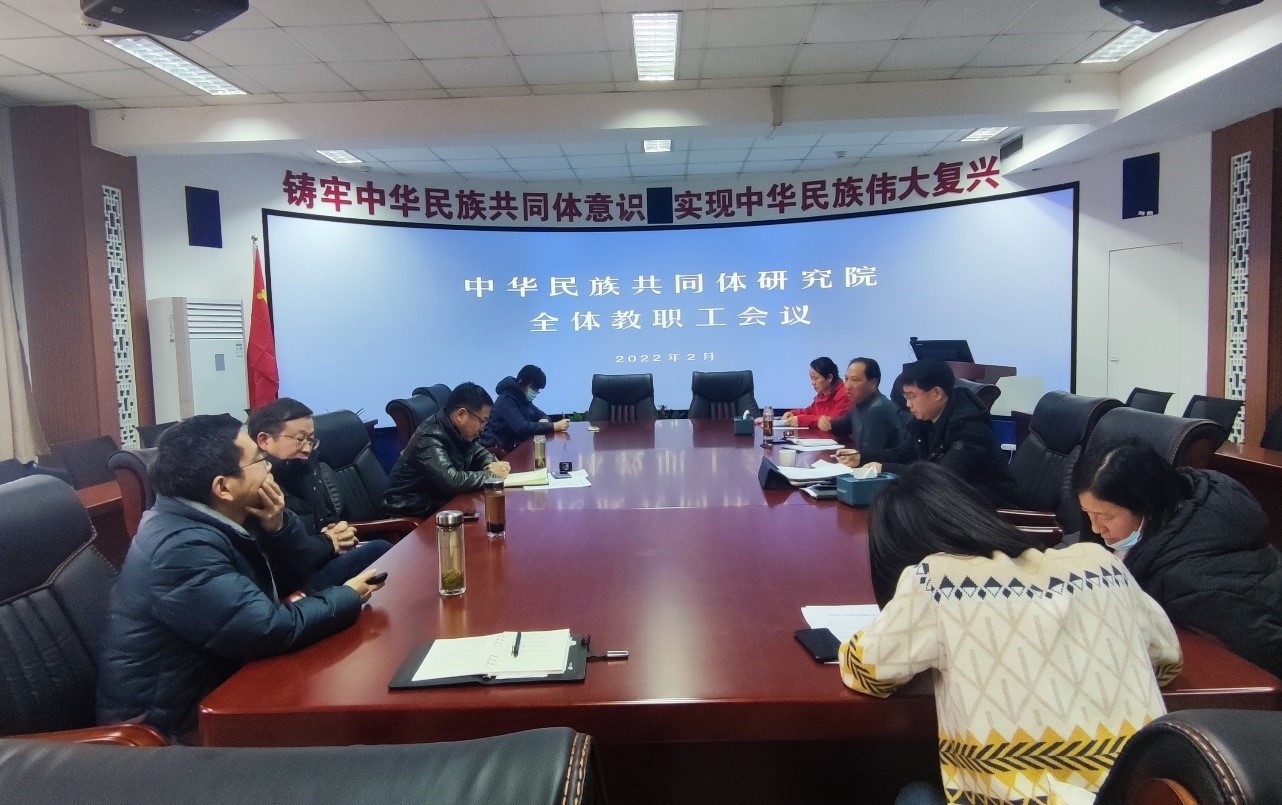 會上,院班子成員方清云、李學(xué)保、湯振華、姚上海分別傳達(dá)了2022年全國民委主任會議、《中華民族交流交往交融史》編纂工作部署會、國家民委2022年全面從嚴(yán)治黨工作會議、學(xué)校春季開學(xué)干部會議精神以及學(xué)校2022年工作要點。