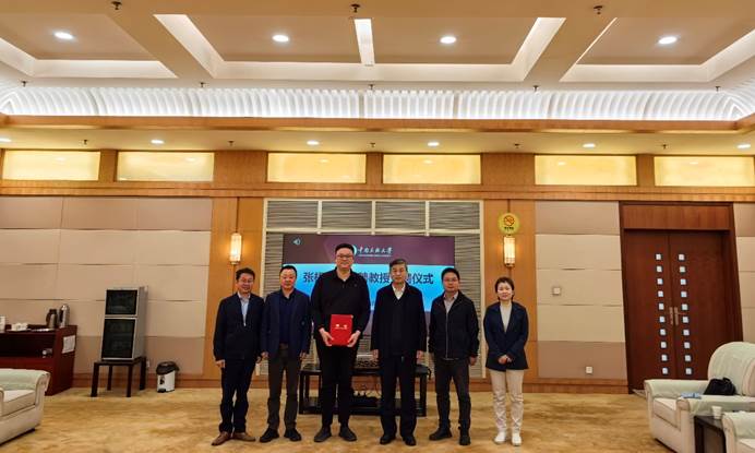 邊境為張梧研究員頒發學校特聘教授聘書并講話。他指出,張梧老師政治站位高,對《中華民族共同體概論》教材理解深、把握準,在教學內容、形式和方法等方面都有很深造詣,期待為我校概論課建設提質增效注入更大動力。