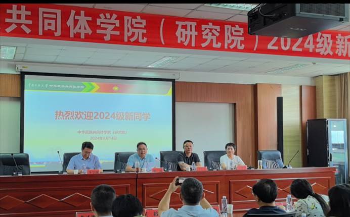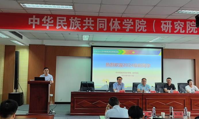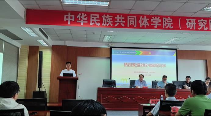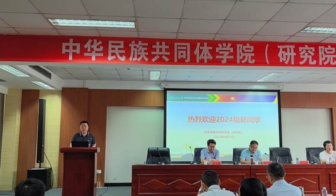 院研究生會主席熊永恒代表老生祝賀2024級同學邁上新臺階,希望他們立下新目標,祝愿他們擁有新生活,力爭成為新時代有為新青年。