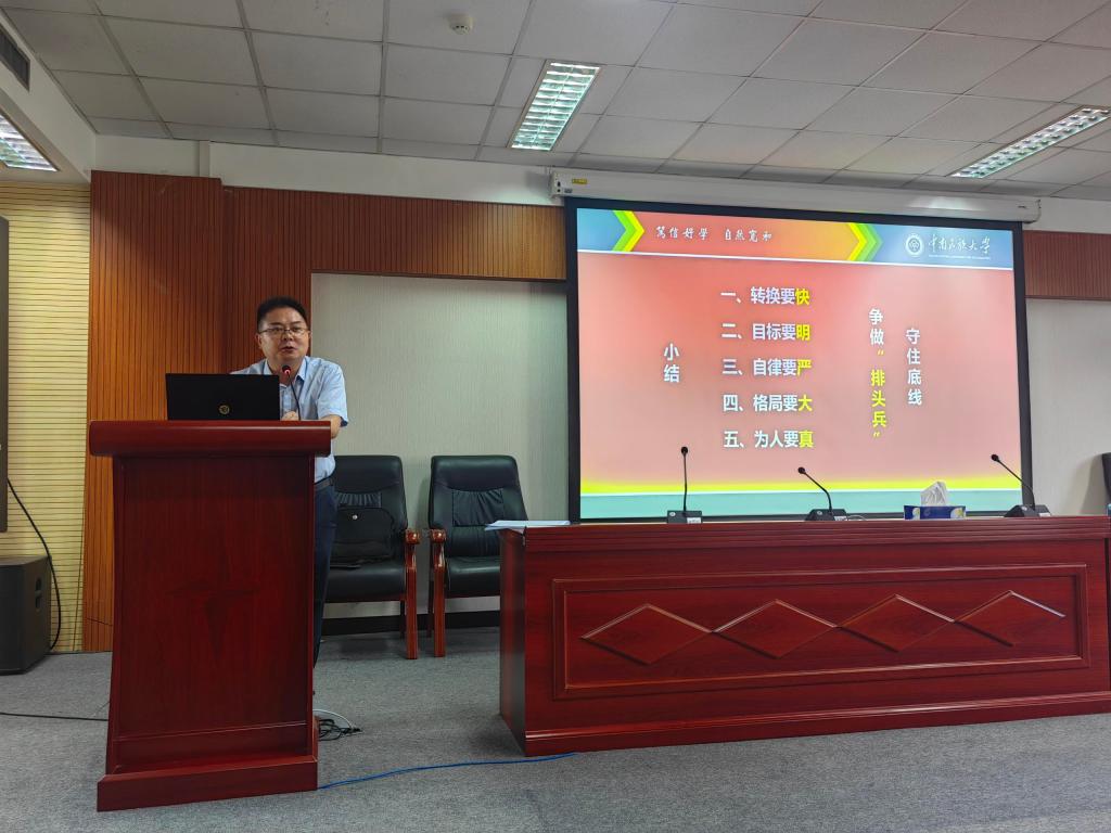 賀展向學生傳達學習了習近平總書記在全國民族團結進步表彰大會上的重要講話精神以及全國民族民族團結進步表彰大會的重大意義及相關情況。隨后賀展講授開學第一課并提出五點要求:一是轉換要快;二是目標要明;三是自律要嚴;四要格局要大;五是為人要真。