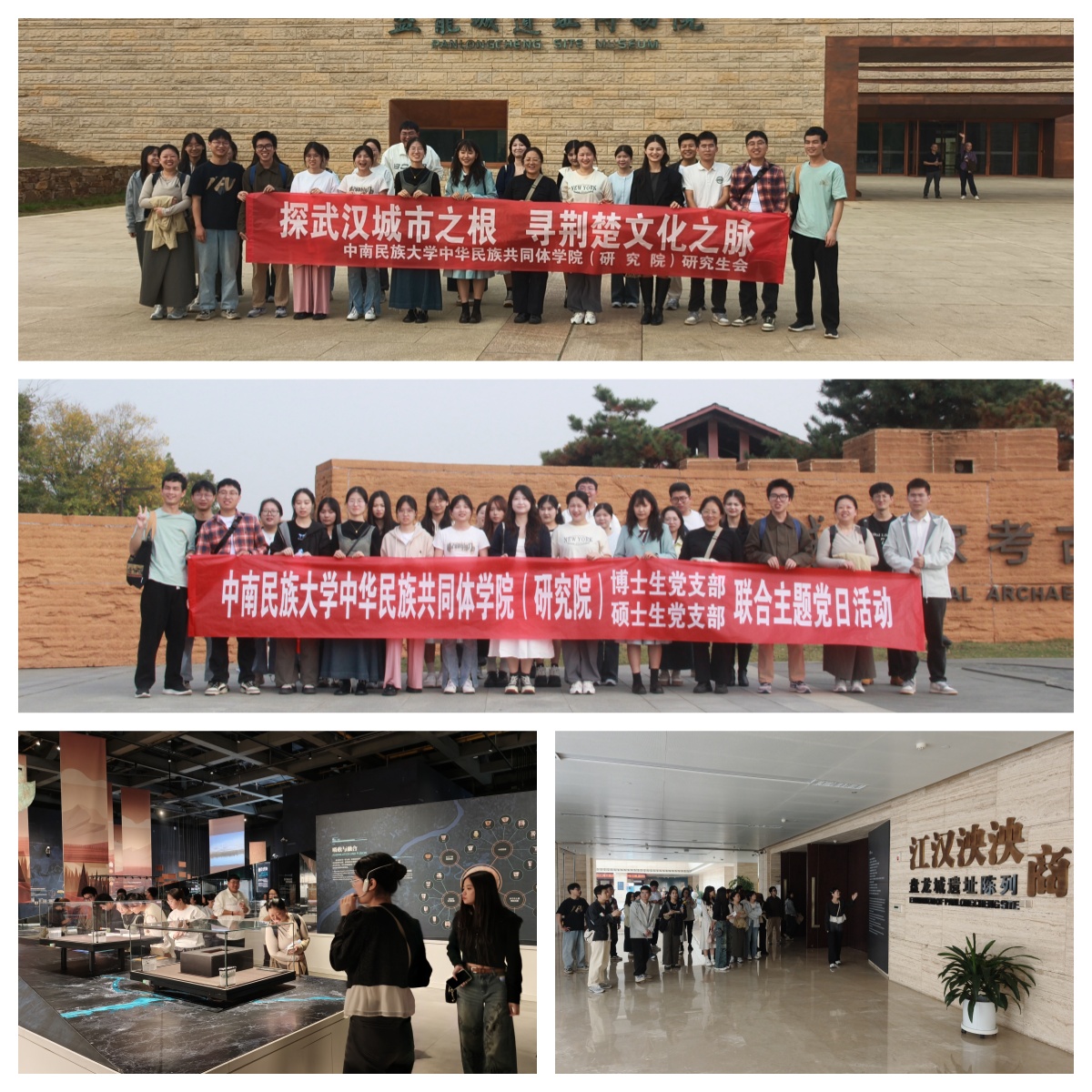 為深入學習貫徹習近平文化思想,在中華優秀傳統文化中感悟紅色基因、追尋紅色足跡、鑄牢中華民族共同體意識,11月14日,我院研究生會聯合碩士、博士學生黨支部開展主題黨日暨盤龍城國家考古遺址公園參觀活動。