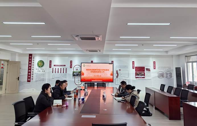 為全面保障新學期教育教學工作順利開展,規范教學管理,營造良好教學秩序,2月24上午,黨委宣傳部常務副部長桂孫來、國際合作與交流處副處長胡晶晶組成的檢查組到我院開展開學教學檢查工作,與我院教職工代表座談交流,并實地走訪。院領導班子成員、黨政辦公室主任參加座談會,會議由黨總支書記賀展主持。