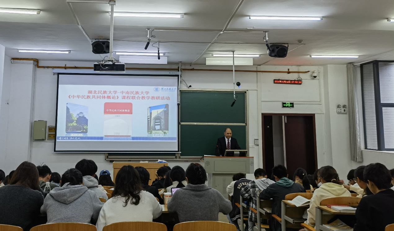 為深入學習貫徹習近平總書記在全國民族團結進步表彰大會上的重要講話精神,推動中南片區中華民族共同體概論課程建設聯盟和虛擬教研室發展,10月14日,我院中華民族共同體概論教研室主任裴圣愚帶隊赴湖北民族大學開展“共讀教材悟鑄牢”聯合教學教研活動。我院概論課教師代表趙夢涵、部分學生代表參加活動。本次活動分為課堂教學交流和主題教研兩個環節。