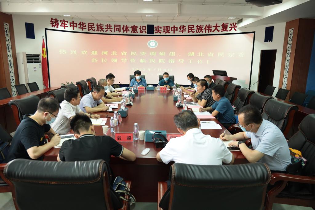 7月4日上午,河北省民委調(diào)研組一行9人在文化教育科技處處長(zhǎng)耿棟良帶領(lǐng)下,來我校調(diào)研開展鑄牢中華民族共同體意識(shí)教育的經(jīng)驗(yàn)做法,并在我院舉行調(diào)研座談。湖北省民宗委民族二處二級(jí)調(diào)研員郭用德等陪同調(diào)研。校黨委宣傳部、黨委學(xué)生工作部相關(guān)負(fù)責(zé)人,我院領(lǐng)導(dǎo)班子成員參加調(diào)研座談。座談會(huì)由我院黨總支書記湯振華主持。